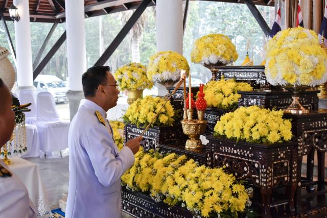 วันที่ 18 มกราคม 2568 นางฐิติมา เร่งประเสริฐ ศึกษาธิการจังหวัดเชียงราย มอบหมายให้ พ.จ.ต.ฉลอง อ่อนนวน รองศึกษาธิการจังหวัดเชียงราย นำข้าราชการและเจ้าหน้าที่ในสังกัดฯ คณะร่วมพิธีคณะที่ 3 เข้าร่วมพิธีถวายราชสักการะสมเด็จพระนเรศวรมหาราช (วันยุทธหัตถี) ณ ศาลสมเด็จพระนเรศวรมหาราช ตำบลแม่พริก อำเภอแม่สรวย จังหวัดเชียงราย โดยมี นายชรินทร์ ทองสุข ผู้ว่าราชการจังหวัดเชียงราย เป็นประธานในพิธี