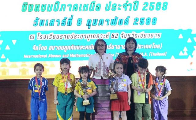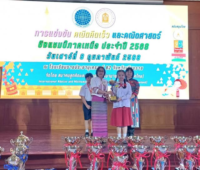 นางฐิติมา เร่งประเสริฐ ศึกษาธิการจังหวัดเชียงรายมอบหมายให้ นางสาวจันทร์แสง พรมสี รองศึกษาธิการจังหวัดเชียงราย เป็นประธานมอบรางวัลการแข่งขันคณิตคิดเร็วและคณิตศาสตร์ชิงแชมป์ภาคเหนือประจำปี 2568 ณ โรงเรียนราชประชานุเคราะห์ 62 จังหวัดเชียงราย จัดโดยสมาคมลูกคิดและคณิตศาสตร์นานาชาติประจำจังหวัดเชียงราย (ประเทศไทย)