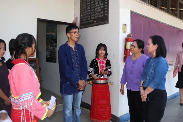 นางฐิติมา เร่งประเสริฐ ศึกษาธิการจังหวัดเชียงราย นำทีมงานลงพื้นที่ติดตามนโยบาย “เรียนดี มีความสุข” Learn to Earn รร.บ้านแหลวนาล้อม อ.แม่จัน สังกัดสพป.เชียงราย เขต 3 เพื่อเสริมสร้างขวัญกำลังใจรวมถึงเปิดโลกทัศน์ให้นักเรียนได้นำเสนอผลงานผ่านกิจกรรมการเรียนรู้ที่หลากหลายตามบริบทและความสนใจของนักเรียน โรงเรียนบ้านแหลวนาล้อม เป็นสถานศึกษาขนาดเล็ก เปิดสอนตั้งแต่ชั้นอนุบาล1-ชั้นประถมศึกษาปีที่ 6 มีนักเรียน 119 คน ข้าราชการครูและบุคลากร 9 คน โดยมี นางสาวณัฏฐณิชา ขันใจ เป็นผู้อำนวยการโรงเรียน ให้บริการใน 2 หมู่บ้าน นักเรียนส่วนใหญ่เป็นเด็กต่างถิ่น โรงเรียนจึงสร้างโอกาสในการเรียนรู้ผ่านกิจกรรมการเรียนรู้ที่หลากหลายตามบริบทและความสนใจนักเรียน