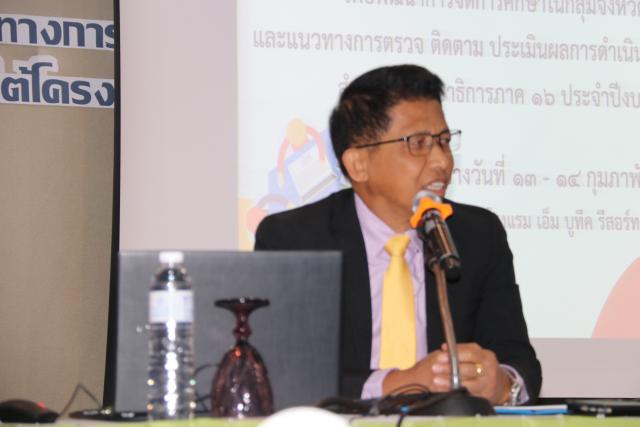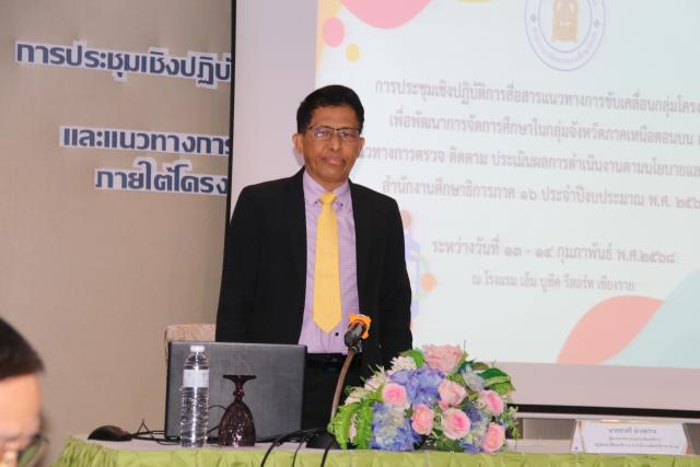นายชาตรี ม่วงสว่าง ผู้ตรวจราชการกระทรวงศึกษาธิการ ปฏิบัติหน้าที่ศึกษาธิการภาค สำนักงานศึกษาธิการภาค 16 เป็นประธานการประชุมเชิงปฏิบัติการสื่อสารแนวทางการขับเคลื่อนกลุ่มโครงการเพื่อพัฒนาการจัดการศึกษาในกลุ่มจังหวัดภาคเหนือตอนอบน 2 และแนวทางการตรวจ ติดตาม ประเมินผลการดำเนินงานตามนโยบายและยุทธศาสตร์สำนักงานศึกษาธิการภาค 16 ประจำปีงบประมาณ พ.ศ. 2568 ระหว่างวันที่ 13 - 14 กุมภาพันธ์ 2568ณ โรงแรม เอ็ม บูทีค รีสอร์ท อ.เมืองเชียงราย จ.เชียงรายจัดโดยสำนักงานศึกษาธิการภาค 16