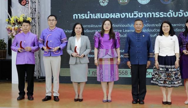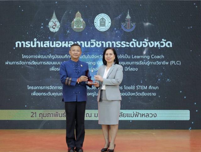 นางฐิติมา เร่งประเสริฐ ศึกษาธิการจังหวัดเชียงราย พร้อมด้วย นายอนุรักษ์ พรมเลข นางสาวพรรณาพัชร ฐากุลสิริโชติ ศึกษานิเทศก์ ชำนาญการพิเศษ และนางสาวมัลลิกา เขื่อนแก้ว เจ้าพนักงานธุรการ เข้าร่วมรับมอบโล่เกียรติคุณหน่วยงานร่วมดำเนินโครงการขับเคลื่อนการบรรลุเป้าหมาย ตามยุทธศาสตร์ชาติด้านการพัฒนาและเสริมสร้างศักยภาพทรัพยากรมนุษย์ในมิติด้านการศึกษาสนองต่อการเปลี่ยนแปลง ในศตวรรษที่ 21 ปีงบประมาณ พ.ศ. 2567 ณ อาคารพลเอกสำเภา ชูศรี (E4) มหาวิทยาลัยแม่ฟ้าหลวง โดยมีนายประเสริฐ จิตต์พลีชีพ รองผู้ว่าราชการจังหวัดเชียงราย เป็นประธานเปิดกิจกรรมและมอบโล่เกียรติคุณคุณหน่วยงานร่วมดำเนินโครงการฯ ในครั้งนี้