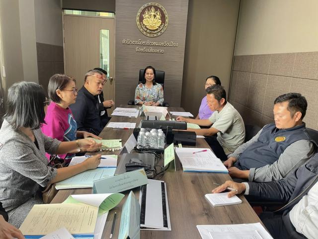 นางฐิติมา เร่งประเสริฐ ศึกษาธิการจังหวัดเชียงราย พร้อมด้วย พันจ่าตรีฉลอง อ่อนนวน และ นางสาวจันทร์แสง พรมสี รองศึกษาธิการจังหวัดเชียงราย และผู้เกี่ยวข้อง เข้าร่วมการประชุม “คณะกรรมการตรวจรับพัสดุ และผู้ควบคุมงาน โครงการก่อสร้างอาคารสำนักงานศึกษาธิการจังหวัดเชียงราย” ครั้งที่ 1 ประจำปีงบประมาณ พ.ศ. 2568 โดยมีบุคลากรจาก สำนักงานโยธาธิการและผังเมืองจังหวัดเชียงราย , องค์การบริหารส่วนตำบลริมกก และบริษัท เอิร์ธ คอนแทค จำกัด ผู้รับจ้าง เพื่อจัดทำแผนการดำเนินงานตามสัญญาจ้างก่อสร้าง ณ ห้องประชุมสำนักงานโยธาธิการและผังเมืองจังหวัดเชียงราย ตำบลริมกก อำเภอเมืองเชียงราย จังหวัดเชียงราย