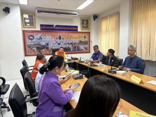 เวลา 09.30 น. ณ ห้องประชุมสำนักงานป้องกันและบรรเทาสาธารณภัยจังหวัดเชียงราย ชั้น 3 ศาลากลางจังหวัดเชียงราย นายชรินทร์ ทองสุข ผู้ว่าราชการจังหวัดเชียงราย นำหัวหน้าส่วนราชการ ที่เกี่ยวข้อง ร่วมประชุมกองบัญชาการป้องกันและบรรเทาสาธารณภัยแห่งชาติ (บกปภ.ช.) ผ่านระบบ Zoom Meeting โดยมี นางสาวแพทองธาร ชินวัตร นายกรัฐมนตรี เป็นประธานการประชุมฯ เพื่อให้การติดตามสถานการณ์ผลกระทบและ การแก้ไขปัญหาจากแผ่นดินไหวให้เป็นไปอย่างมีประสิทธิภาพ ผู้ว่าราชการจังหวัดเชียงราย จึงได้สั่งการให้ ศึกษาธิการจังหวัดเชียงราย สำรวจความเสียหายของสถานศึกษาในพื้นที่จังหวัดเชียงรายที่ได้รับผลกระทบจากเหตุการณ์แผ่นดินไหวและให้รายงานมายังศูนย์รวบรวมข้อมูลภายในวันนี้ (วันที่ 29 มีนาคม 2568)