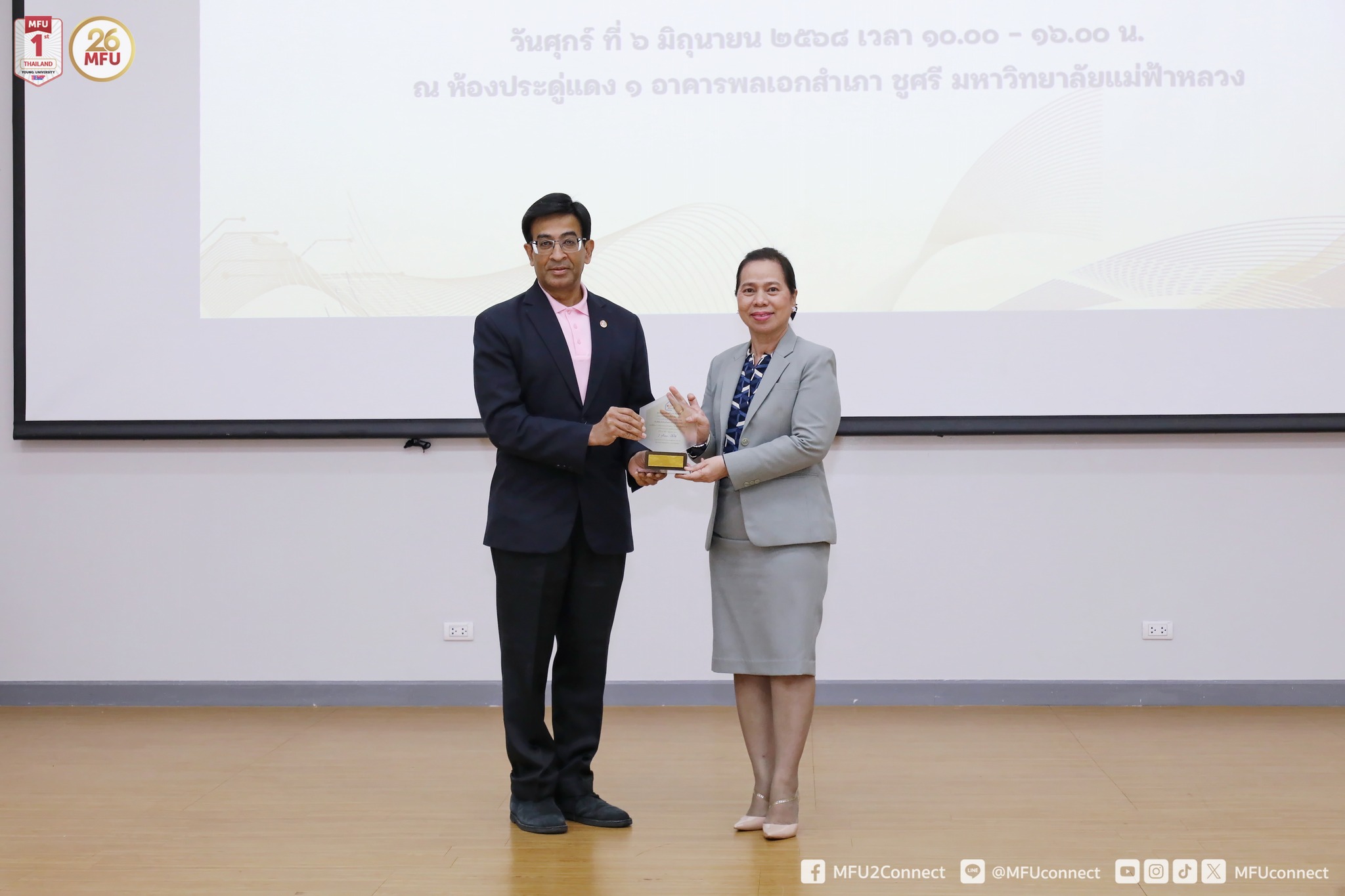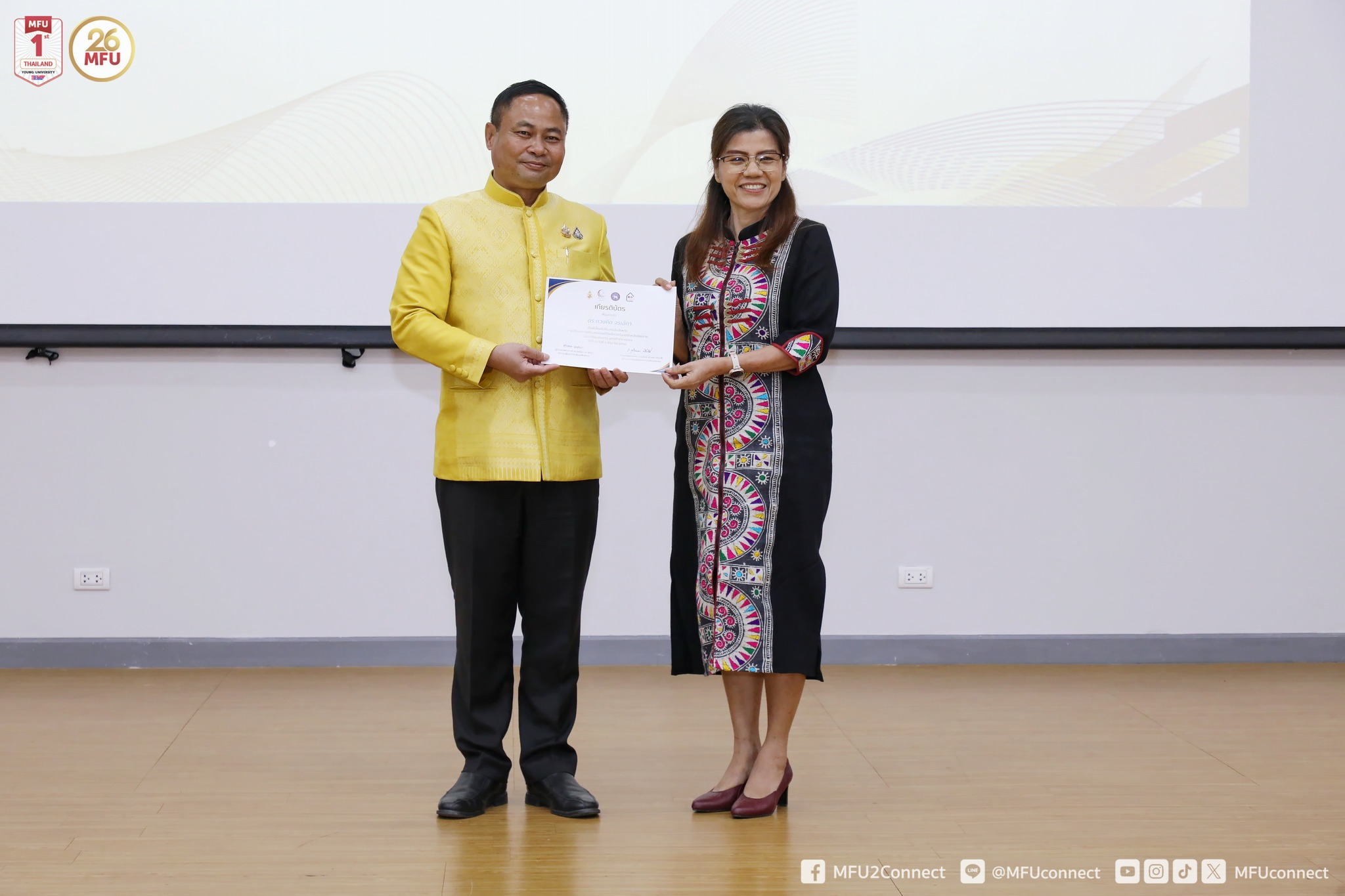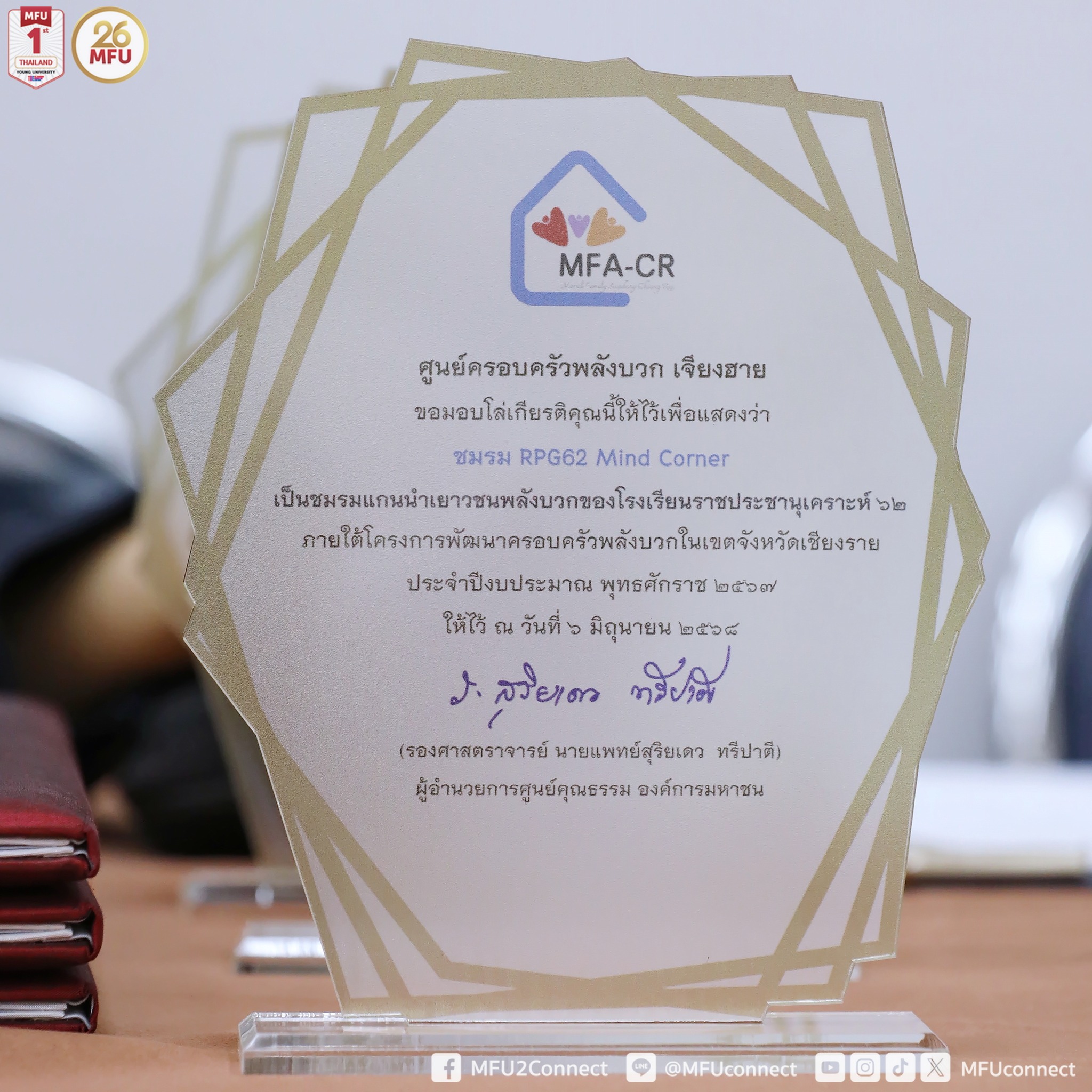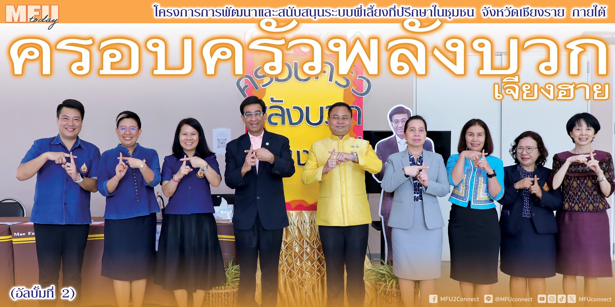 วันศุกร์ที่ 6 มิถุนายน 2568 นางฐิติมา เร่งประเสริฐ ศึกษาธิการจังหวัดเชียงราย พร้อมด้วย นางดวงคิด จรเอ้กา ศึกษานิเทศก์ชำนาญการพิเศษ นางสาวารินทร์ วิตูล นักทรัพยากรบุคคลชำนาญการพิเศษ ร่วมกิจกรรม “ครอบครัว พลังบวก เจียงฮาย จัดโดย สำนักวิชาพยาบาลศาสตร์ มหาวิทยาลัยแม่ฟ้าหลวง (มฟล.) โครงการวิจัยการพัฒนาและสนับสนุนระบบพี่เลี้ยงที่ปรึกษาในชุมชนจังหวัดเชียงราย ภายใต้โครงการครอบครัวพลังบวก (ต่อเนื่อง) ร่วมกับ ศูนย์คุณธรรม (องค์การมหาชน) โดยได้รับเกียรติจาก นายรุจติศักดิ์ รังษี รองผู้ว่าราชการจังหวัดเชียงราย เป็นประธานเปิดกิจกรรม พร้อมมอบเกียรติบัตรและโล่เกียรติคุณให้แก่คณะทำงานระดับต่าง ๆ ซึ่งเป็นหน่วยงานและเครือข่ายแกนนำพลังบวก นักวิชาการ นักวิจัย และพี่เลี้ยงที่ปรึกษาในชุมชน จังหวัดเชียงราย โดยมี ผศ.ดร.ร่มเย็น โกไศยกานนท์ รองอธิการบดี มฟล. เป็นผู้แทนอธิการบดีกล่าวต้อนรับผู้ร่วมงาน นายพิสันต์ จันทร์ศิลป์ วัฒนธรรมจังหวัดเชียงราย ประธานศูนย์ครอบครัวพลังบวก เจียงฮาย กล่าวรายงานผลสำเร็จของการดำเนินงาน ณ ห้องประชุมประดู่แดง 1 อาคารพลเอกสำเภา ชูศรี มหาวิทยาลัยแม่ฟ้าหลวง