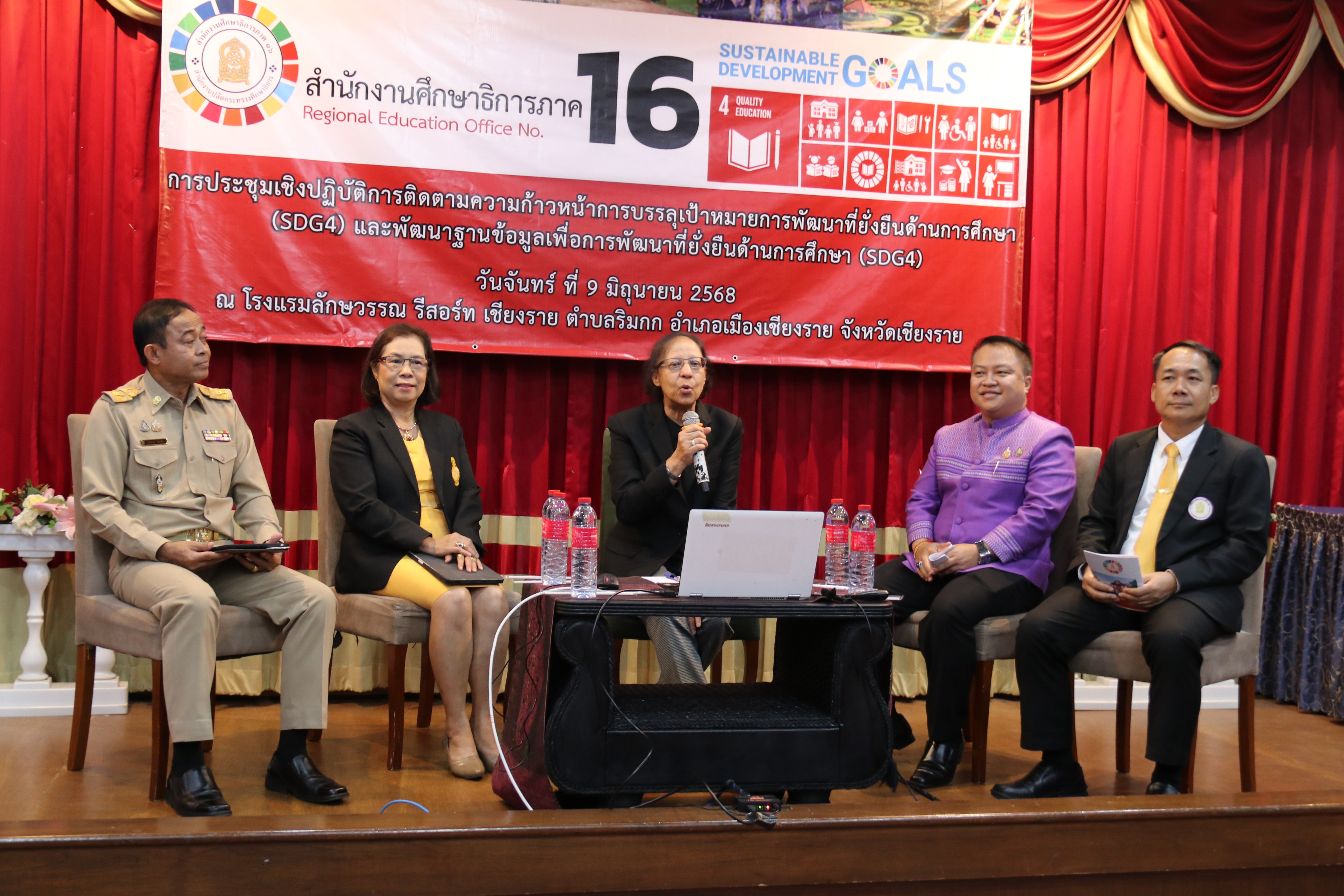 วันจันทร์ที่ 9 มิถุนายน 2568 นางฐิติมา เร่งประเสริฐ ศึกษาธิการจังหวัดเชียงราย ได้รับมอบหมายจาก นายชาตรี ม่วงสว่าง ผู้ตรวจราชการกระทรวงศึกษาธิการ ปฏิบัติหน้าที่ศึกษาธิการ ภาค 16 เป็นประธานเปิดการประชุมปฏิบัติการติดตามความก้าวหน้าบรรลุเป้าหมายการพัฒนาที่ยั่งยืนด้านการศึกษา (SDG4) และพัฒนาฐานข้อมูลเพื่อการพัฒนายั่งยืนด้านการศึกษา ( SDG4) การพัฒนาและจัดทำข้อมูลสารสนเทศด้านการศึกษา ประจำปีงบประมาณ พ.ศ.2568 โดยมีศึกษาธิการจังหวัดเชียงราย พะเยา แพร่ น่าน และผู้อำนวยการ กลุ่มนโยบายและแผน จากสำนักงานศึกษาธิการจังหวัดฯ เข้าร่วมประชุม ระหว่างวันที่ 9-10 มิถุนายน 2568 ณ โรงแรมลักษวรรณ รีสอร์ท อ.เมืองเชียงราย จ.เชียงราย
