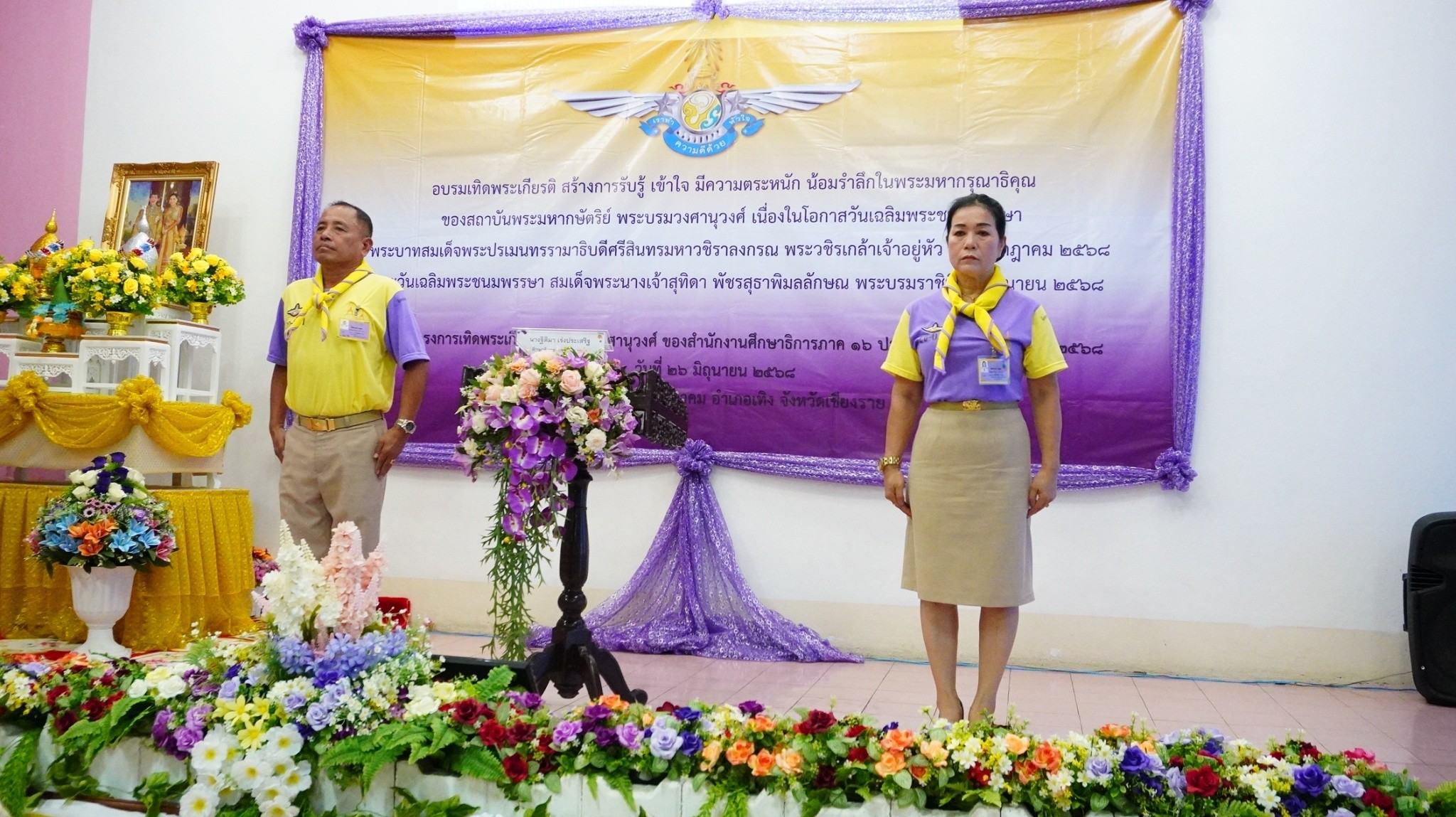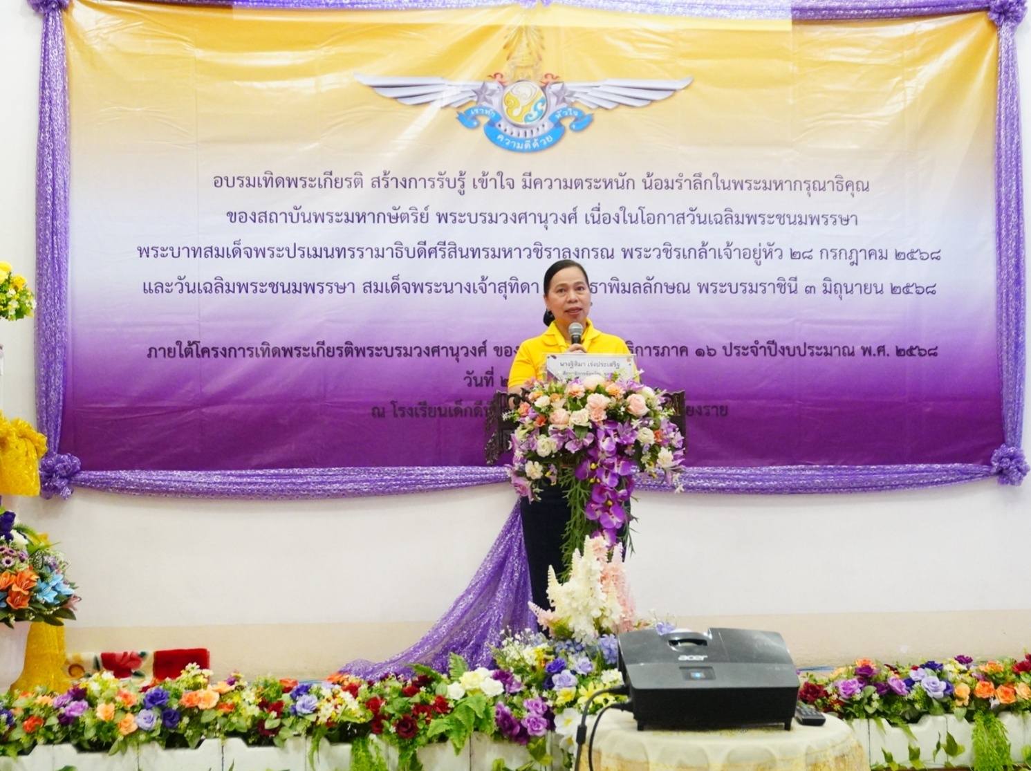 นางฐิติมา เร่งประเสริฐ ศึกษาธิการจังหวัดเชียงราย ได้รับมอบหมาย จาก นายชาตรี ม่วงสว่าง ผู้ตรวจราชการกระทรวงศึกษาธิการ ปฏิบัติหน้าที่ศึกษาธิการภาค สำนักงานศึกษาธิการภาค 16 เป็นประธานเปิดโครงการเทิดพระเกียรติพระบรมวงศานุวงศ์ ประจำปีงบประมาณ พ.ศ.2568 โดยมี นายสุทัศน์ หน่อเรือง ผู้อำนวยการกลุ่มยุทธศาสตร์ ศธภ.16 กล่าวรายงาน ในการนี้ นางขนิษฐา เครือจักร์ จิตอาสาพระราชทาน 904 สังกัดสำนักงานศึกษาธิการจังหวัดเชียงราย พร้อมคณะเป็นวิทยากรให้ความรู้แก่คณะครู นักเรียน และข้าราชการสังกัด ศธภ.16 และ ศธจ.เชียงราย รวมทั้งสิ้น 250 คน ณ โรงเรียนเด็กดีพิทยาคม อ.เทิง จ.เชียงราย
