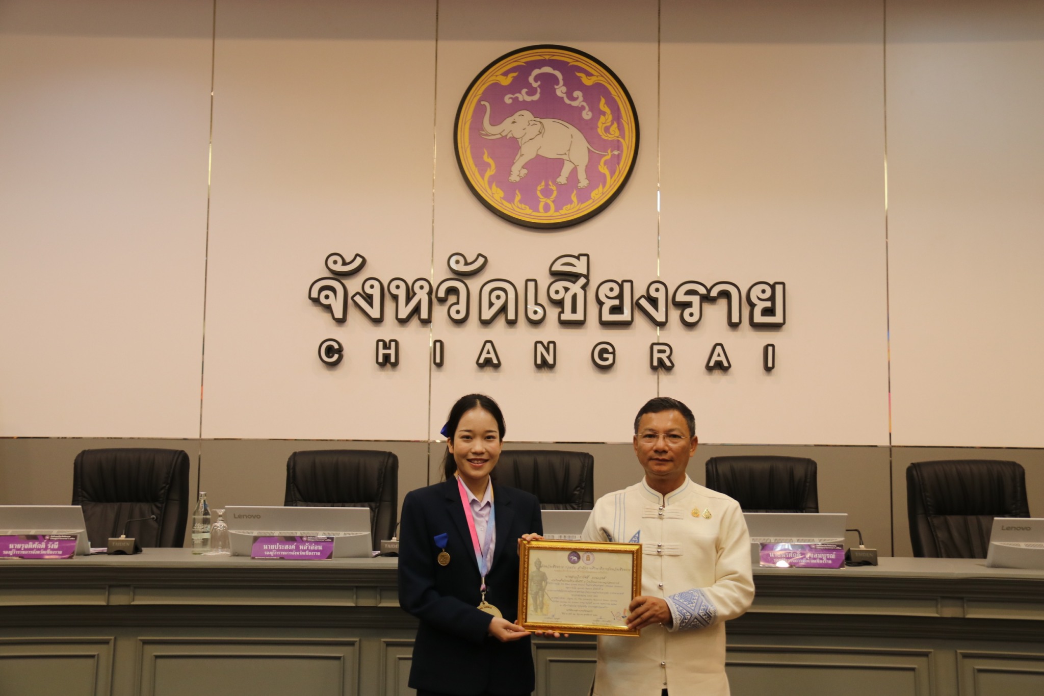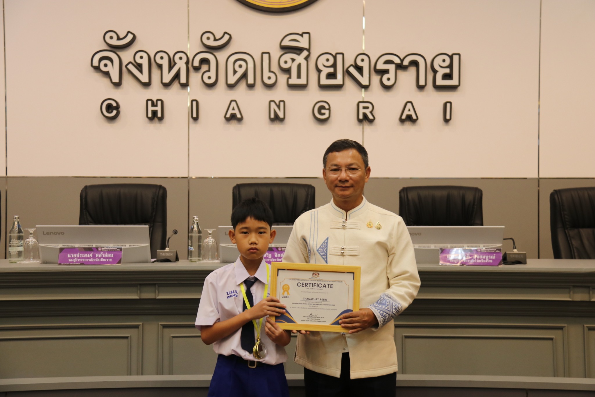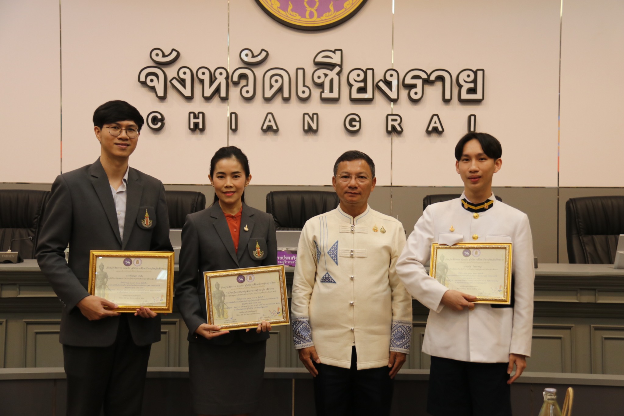ในการนี้ นางฐิติมา เร่งประเสริฐ ศึกษาธิการจังหวัดเชียงราย มอบหมายให้ พ.จ.ต.ฉลอง อ่อนนวน รองศึกษาธิการจังหวัดเชียงราย นำ ผู้อำนวยการโรงเรียน ครูที่ปรึกษา และนักเรียนเข้ารับเกียรติบัตรและรางวัล ณ ห้องประชุมจอมกิตติศาลากลางจังหวัดเชียงราย