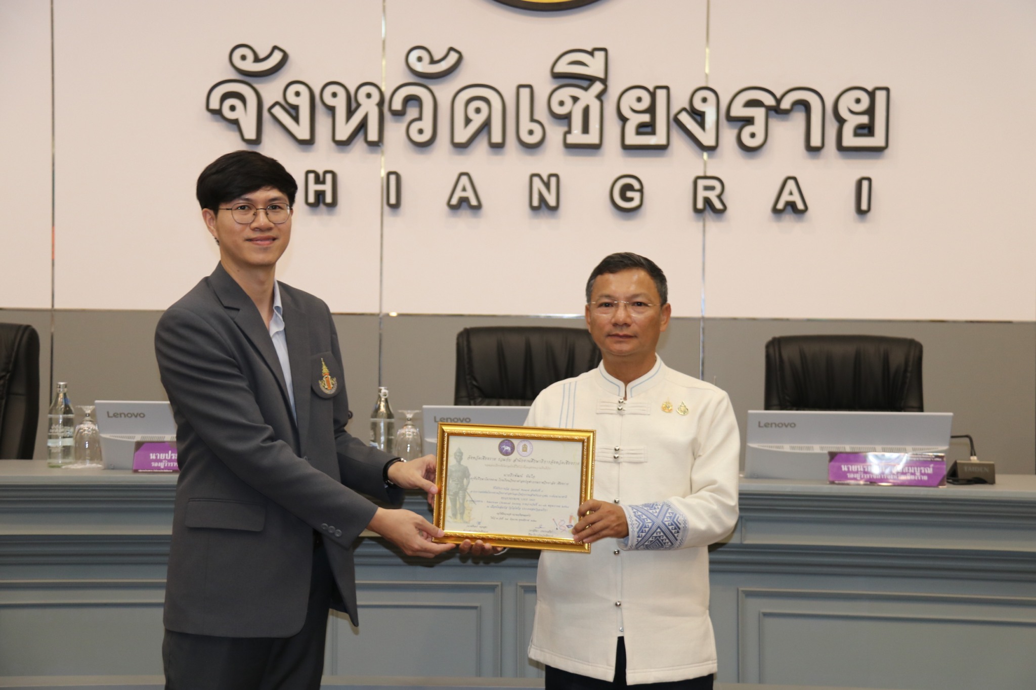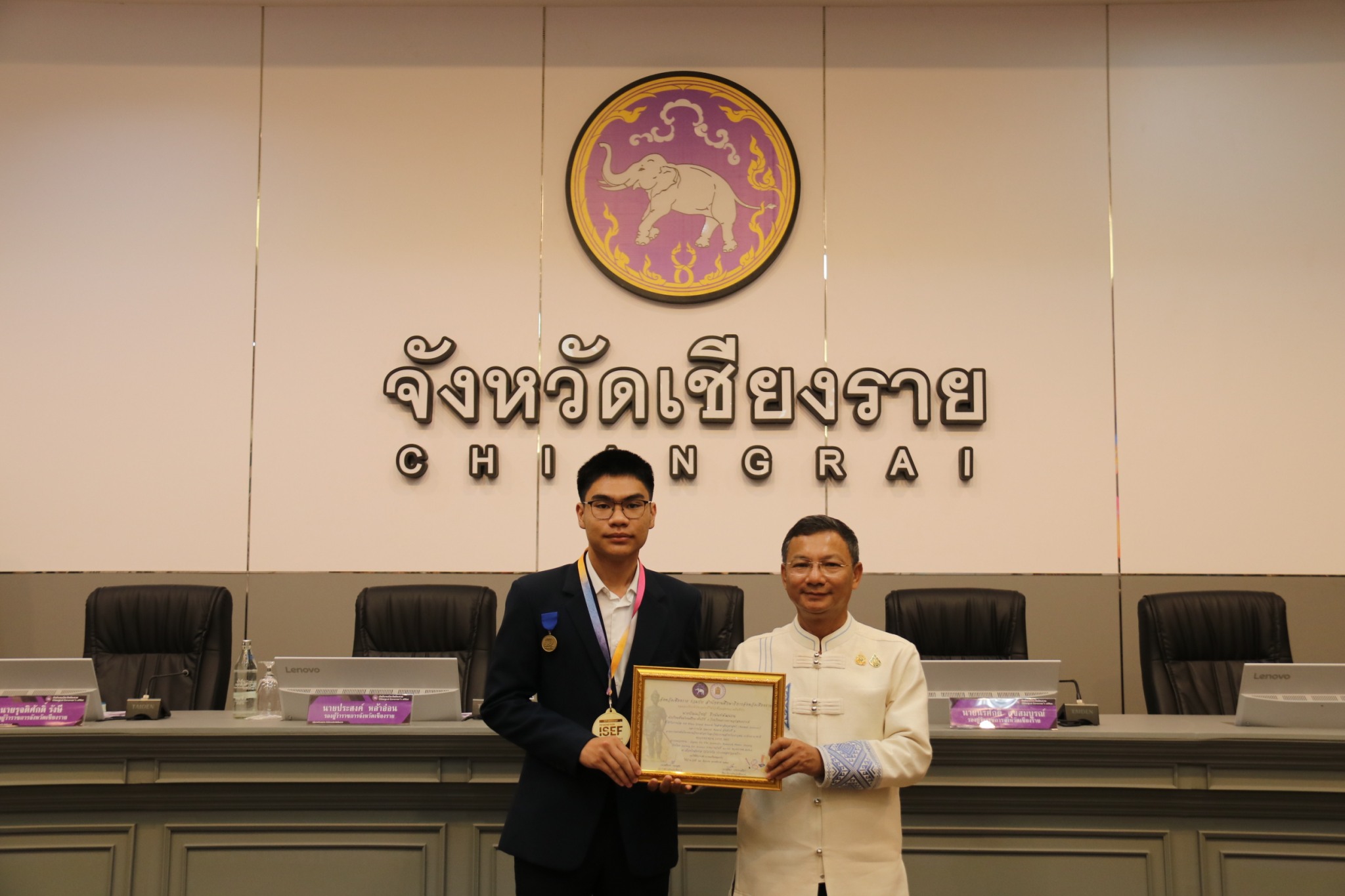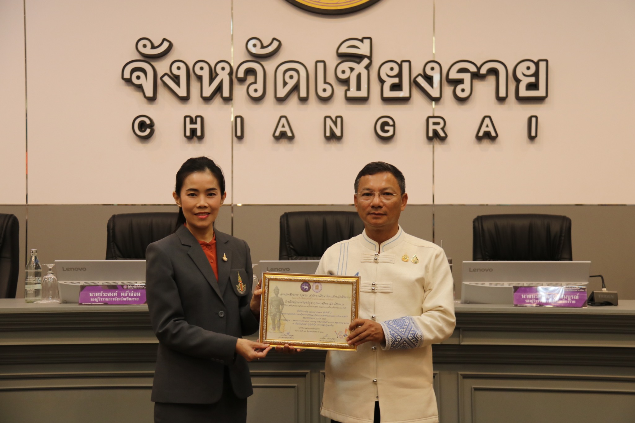 ในการนี้ นางฐิติมา เร่งประเสริฐ ศึกษาธิการจังหวัดเชียงราย มอบหมายให้ พ.จ.ต.ฉลอง อ่อนนวน รองศึกษาธิการจังหวัดเชียงราย นำ ผู้อำนวยการโรงเรียน ครูที่ปรึกษา และนักเรียนเข้ารับเกียรติบัตรและรางวัล ณ ห้องประชุมจอมกิตติศาลากลางจังหวัดเชียงราย