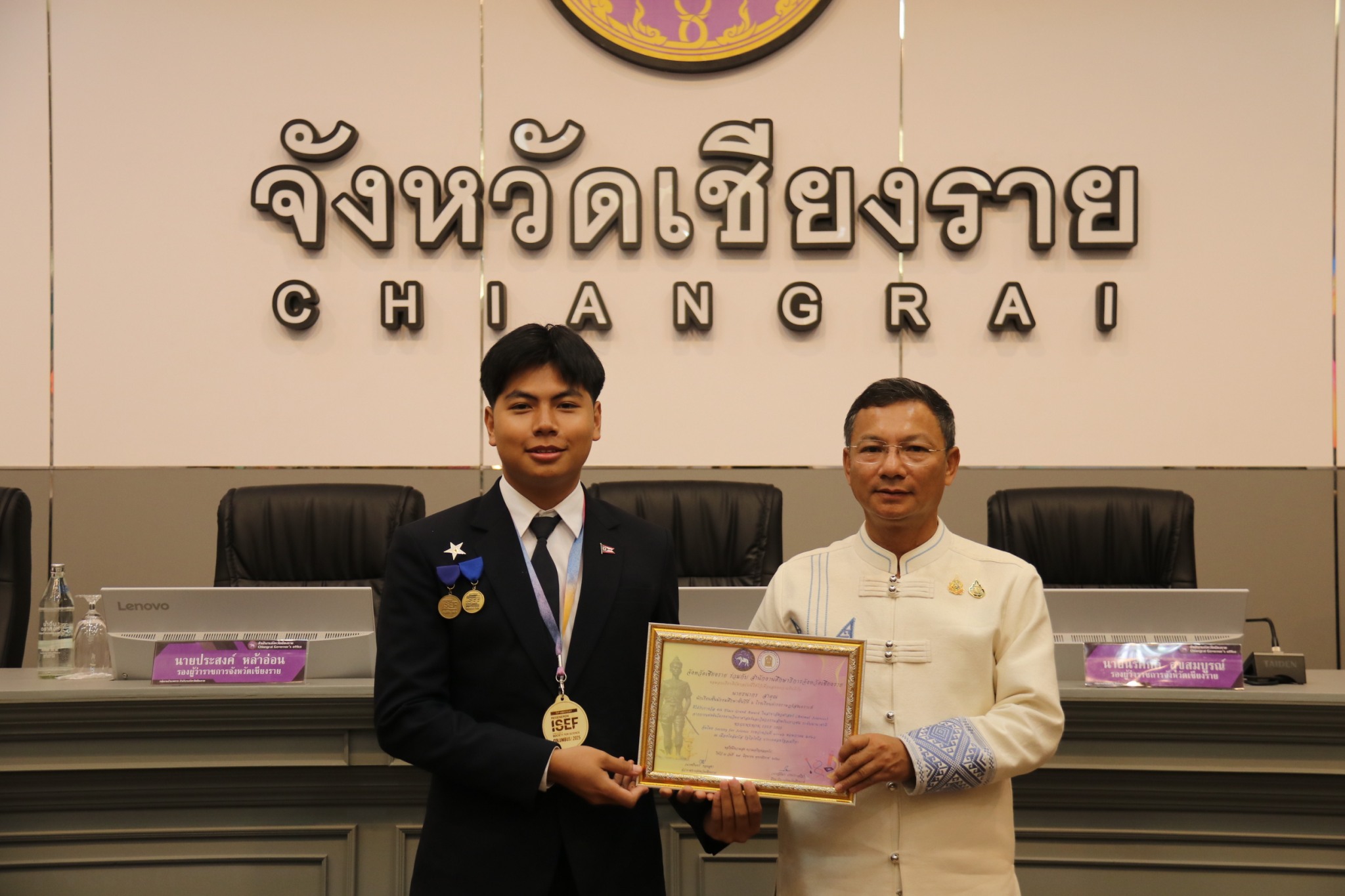 #โรงเรียนวิทยาศาสตร์จุฬาภรราชวิทยาลัย เชียงราย : การประกวดโครงงานวิทยาศาสตร์และวิศวกรรมสำหรับเยาวชน ระดับนานาชาติ REGENERON ISEF 2025 ณ เมืองโคลัมบัส รัฐโอไฮโอ ประเทศสหรัฐอเมริกา ที่จัดโดย Society for Science ระหว่างวันที่ 10-16 พฤษภาคม 2568 ได้รับรางวัล รางวัล Special Award อันดับที่ 4 จากหน่วยงาน : American Chemical Society ได้รับเงินรางวัล 1,000 ดอลลาร์สหรัฐ