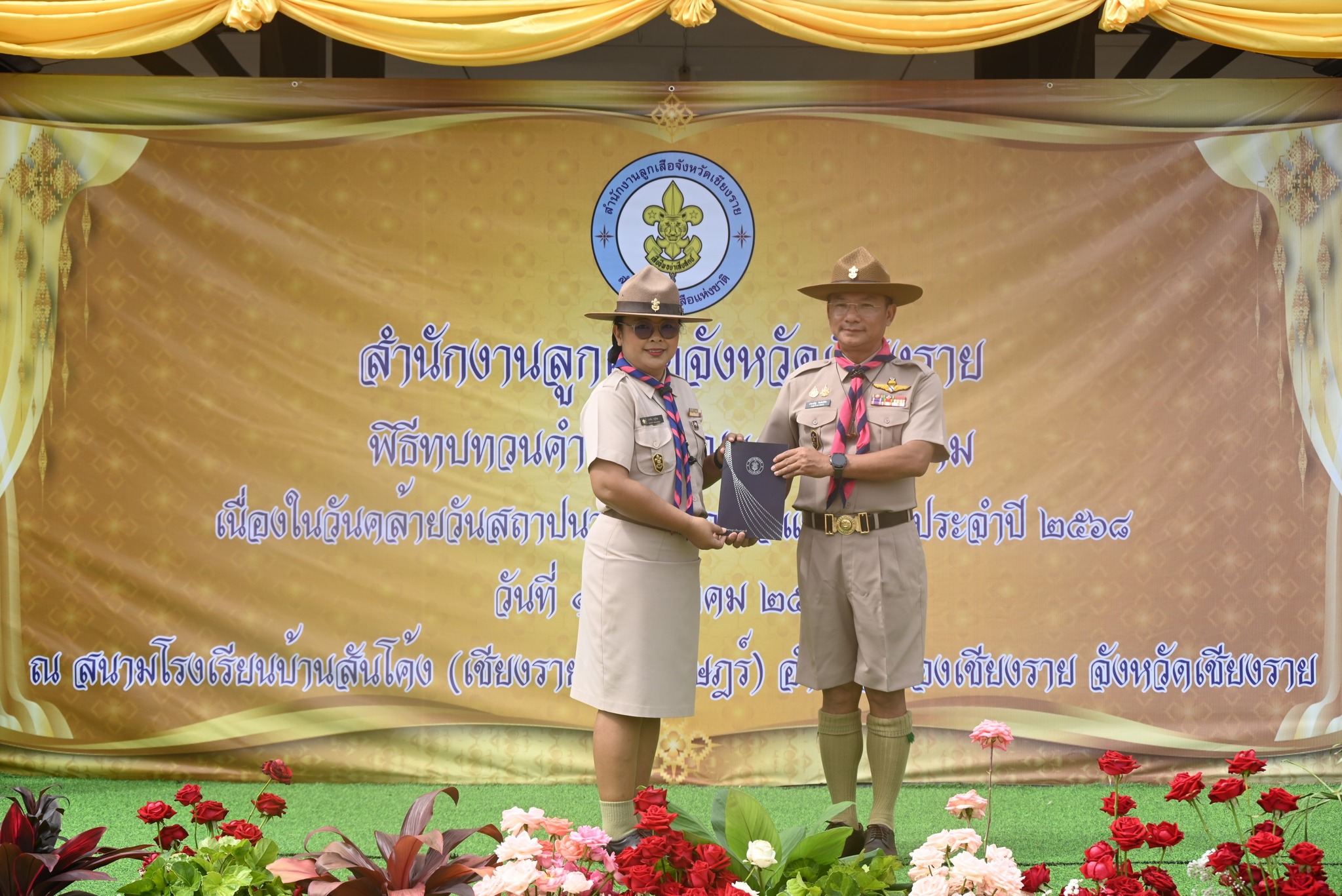 นางฐิติมา เร่งประเสริฐ ศึกษาธิการจังหวัดเชียงราย มอบหมายให้ พ.จ.ต.ฉลอง อ่อนนวน รองศึกษาธิการจังหวัดเชียงราย และเจ้าหน้าที่กลุ่มลูกเสือ ยุวกาชาดและกิจการนักเรียน ร่วมประกอบพิธีทบทวนคำปฏิญาณ และสวนสนาม เนื่องในวันคล้ายวันสถาปนาคณะลูกเสือแห่งชาติ ประจำปี 2568 ณ สนามโรงเรียนบ้านสันโค้ง(เชียงรายจรูญราษฎร์) อำเภอเมืองเชียงราย จังหวัดเชียงราย โดยมี นายประเสริฐ จิตต์พลีชีพ รองผู้ว่าราชการจังหวัดเชียงราย เป็นประธาน