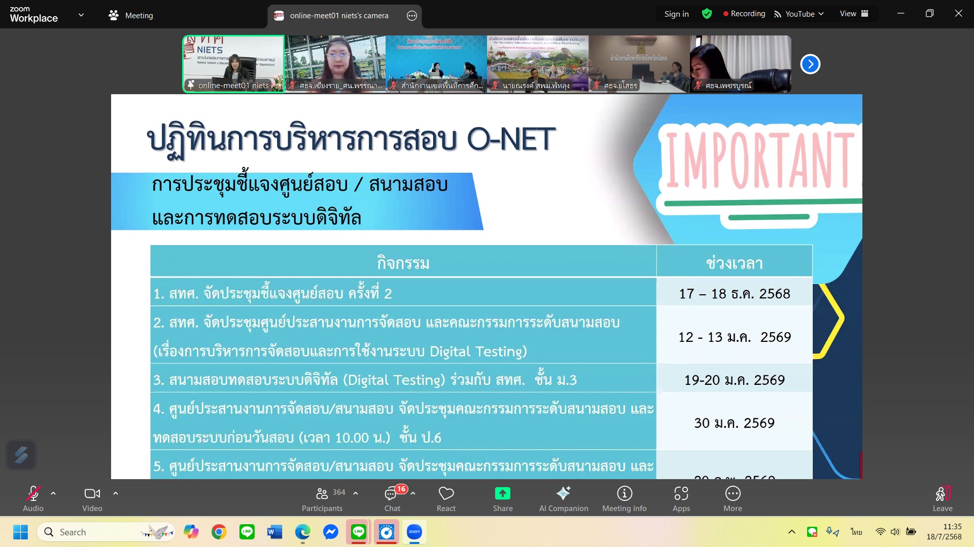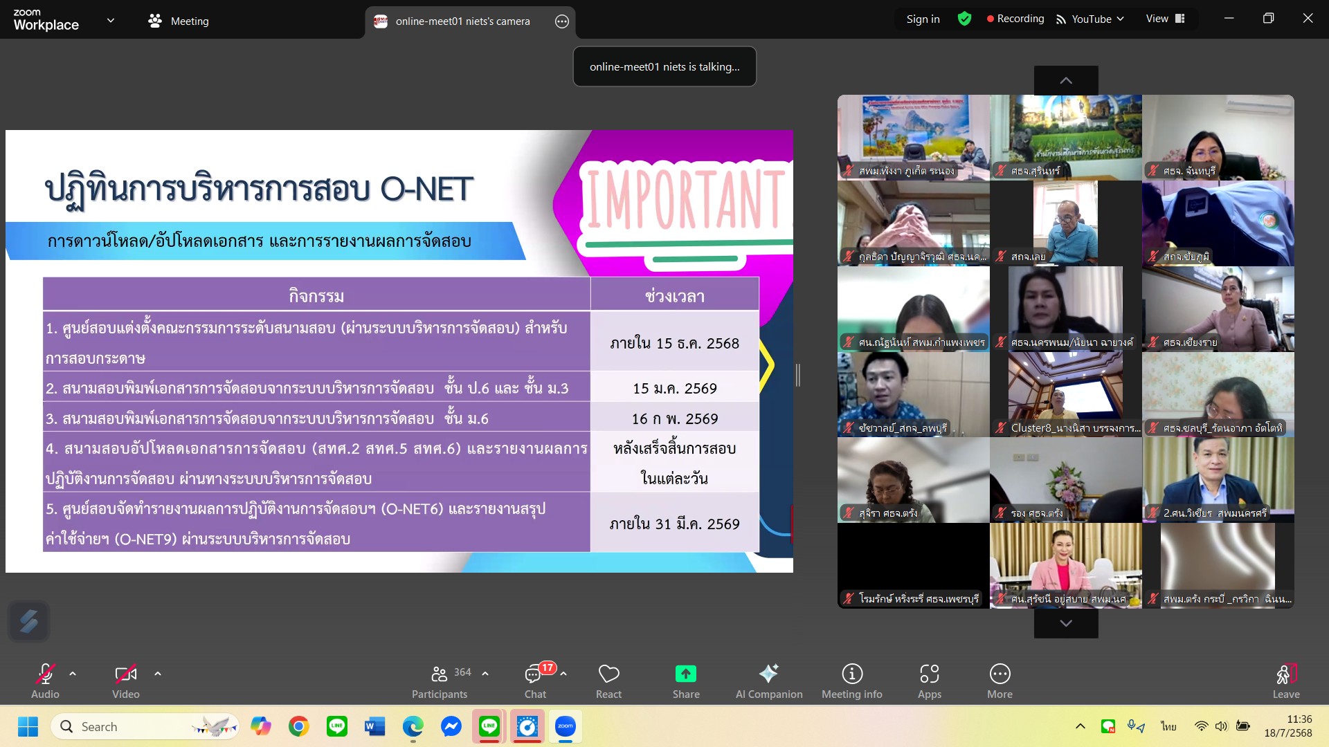 นางฐิติมา เร่งประเสริฐ ศึกษาธิการจังหวัดเชียงราย พร้อมด้วยนายอนุรักษ์ พรมเลข และ นางสาวพรรณาพัชร ฐากุลสิริโชติ ศึกษานิเทศก์ เข้าร่วมการประชุมชี้แจงศูนย์สอบ/ศูนย์ประสานงานการจัดสอบ/สนามสอบ O-NET ปีการศึกษา 2568 ในการบริหารการจัดสอบและใช้งานระบบ Digital Testing ของนักเรียนชั้นประถมศึกษาปีที่ 6 มัธยมศึกษาชั้นปีที่ 3 และ มัธยมศึกษาชั้นปีที่ 6