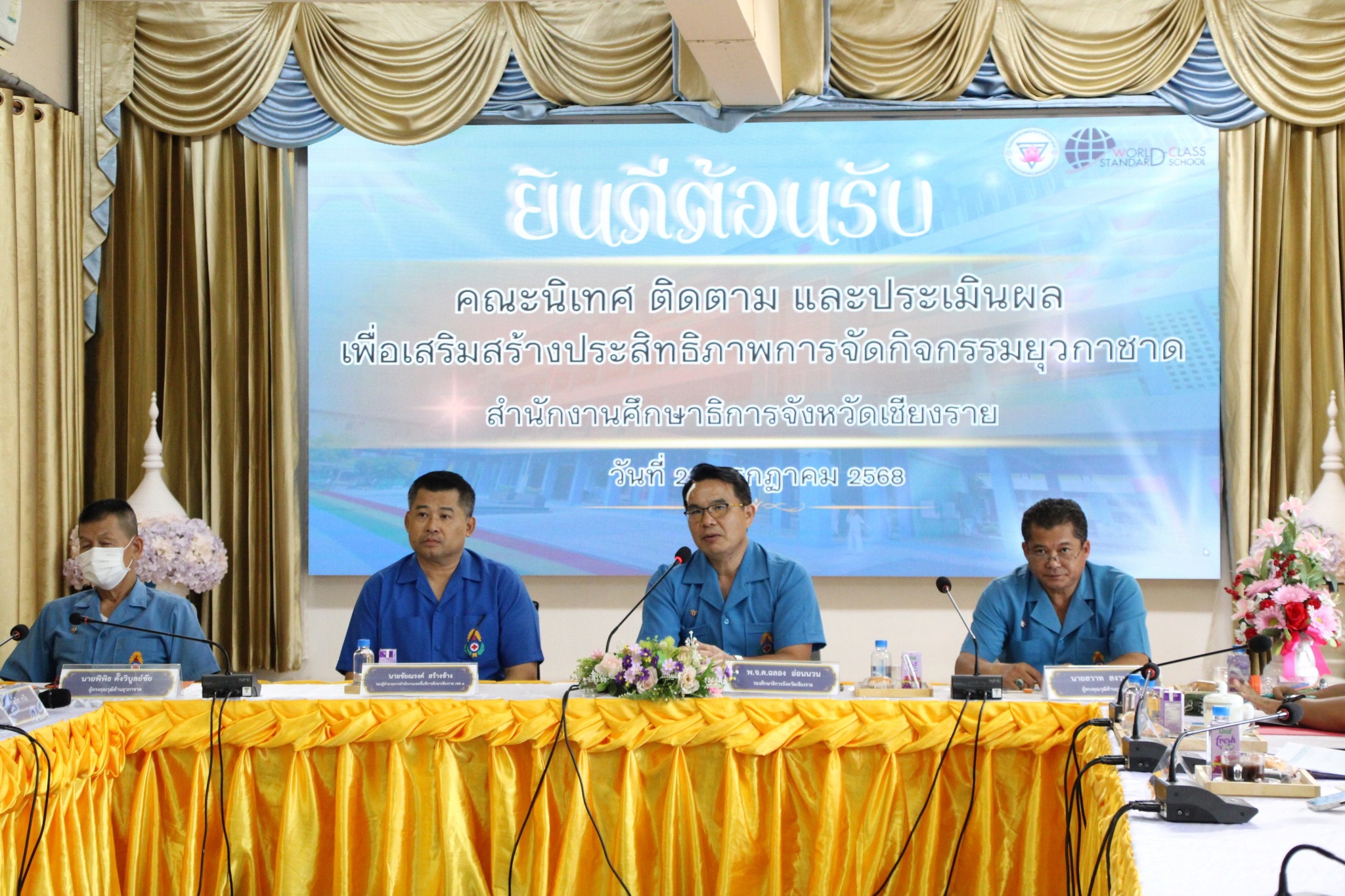 นางฐิติมา เร่งประเสริฐ ศึกษาธิการจังหวัดเชียงราย มอบหมายให้ พ.จ.ต.ฉลอง อ่อนนวน รองศึกษาธิการจังหวัดเชียงราย เป็นประธาน คณะกรรมการนิเทศ ติดตามและประเมินผลเพื่อเสริมสร้างประสิทธิภาพการจัดกิจกรรมยุวกาชาด สถานศึกษาอย่างยั่งยืน โดยได้รับเกียรติจากผู้ทรงคุณวุฒิด้านยุวกาชาด และนายชัยณรงค์ สร้างช้าง รองผู้อำนวยการสำนักงานเขตพื้นที่การศึกษาประถมศึกษาเชียงราย เขต 3 เข้าร่วมการนิเทศฯ และได้รับการต้อนรับจาก นายปรีชา กาวิใจ ผู้อำนวยการ โรงเรียนอนุบาลแม่สาย (สายศิลปศาสตร์) พร้อมคณะครู ณ ห้องประชุมหนองเสือจก โรงเรียอนุบาลแม่สาย(สายศิลปศาสตร์) อำเภอแม่สาย จังหวัดเชียงราย
