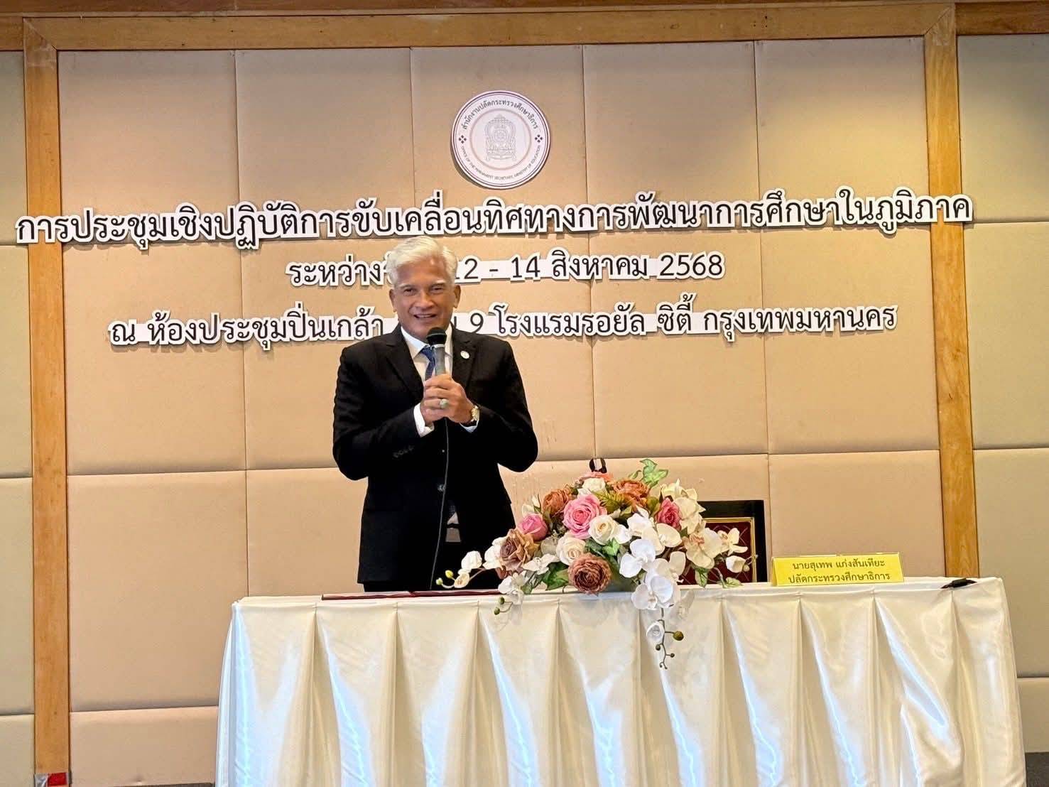 นางฐิติมา เร่งประเสริฐ ศึกษาธิการจังหวัดเชียงราย พร้อมด้วย พ.จ.ต.ฉลอง อ่อนนวน รองศึกษาธิการจังหวัดเชียงราย เข้าร่วมประชุมเชิงปฏิบัติการขับเคลื่อนทิศทางการพัฒนาการศึกษาในภูมิภาค ณ โรงแรมรอยัล ซิตี้ กรุงเทพมหานคร โดยมี นายสุเทพ แก่งสันเทียะ ปลัดกระทรวงศึกษาธิการ เป็นประธานเปิดการประชุมเชิงปฏิบัติการขับเคลื่อนทิศทางการพัฒนาการศึกษาในภูมิภาค พร้อมบรรยายพิเศษเรื่อง “นโยบายและทิศทางการพัฒนาการศึกษาของประเทศและนานาชาติ และเรื่องการขับเคลื่อนการพัฒนาการศึกษาเชิงพื้นที่อย่างบูรณาการ” โดยมี ผู้บริหารระดับสูง ผู้ตรวจราชการกระทรวงศึกษาธิการ ศึกษาธิการภาค รองศึกษาธิการภาค ศึกษาธิการจังหวัด รองศึกษาธิการจังหวัด และผู้อำนวยสำนัก ศูนย์ กอง ในสังกัด สป.ศธ. จำนวนทั้งสิ้น 240 คน