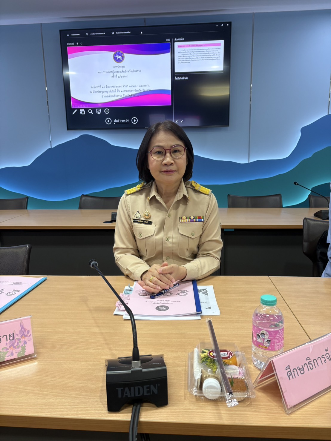 วันที่ 18 สิงหาคม 2568 นางฐิติมา เร่งประเสริฐ ศึกษาธิการจังหวัดเชียงราย มอบหมายให้ นางสาวจันทร์แสง พรมสี รองศึกษาธิการจังหวัดเชียงราย พร้อมด้วย นางสุรินทร์ รุดเครือ ผู้อำนวยการกลุ่มพัฒนาการศึกษา เข้าร่วมประชุมคณะกรรมการคุ้มครองเด็กจังหวัดเชียงราย ครั้งที่ 2/2568 ณ ห้องประชุมพญาพิภักดิ์ ชั้น 2 ศาลากลางจังหวัดเชียงราย โดยมี นายประสงค์ หล้าอ่อน รองผู้ว่าราชการจังหวัดเชียงราย เป็นประธาน