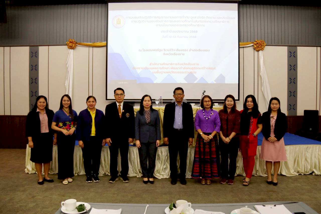 นางฐิติมา เร่งประเสริฐ ศึกษาธิการจังหวัดเชียงราย เป็นประธานเปิดการอบรมเชิงปฏิบัติการสรุปรายงานผลการกำกับ ดูแล เร่งรัด ติดตาม และประเมินผลการปฏิบัติงานของส่วนราชการหรือหน่วยงานและสถานศึกษาในสังกัดกระทรวงศึกษาธิการให้เป็นไปตามนโยบายของกระทรวงศึกษาธิการ ของสำนักงานศึกษาธิการจังหวัดเชียงราย ณ โรงแรมฟอร์จูน ริเวอร์วิว เชียงของ อำเภอเชียงของ จังหวัดเชียงราย ระหว่างวันที่ 12-13 กันยายน 2568 โดยมีรองศึกษาธิการจังหวัดเชียงราย ข้าราชการ และเจ้าหน้าที่ในสังกัด สำนักงานศึกษาธิการจังหวัดเชียงราย เข้าร่วมประชุม จำนวน 56 คน #ในการนี้ นายชาตรี ม่วงสว่าง ผู้ตรวจราชการกระทรวงศึกษาธิการ ได้บรรยายพิเศษ หัวข้อ "แนวทางการสรุปรายงานผลการกำกับ ดูแล เร่งรัดติดตาม และประเมินผลการปฏิบัติงานของส่วนราชการหรือหน่วยงานและสถานศึกษาในสังกัดกระทรวง ศึกษาธิการให้เป็นไปตามนโยบายของกระทรวงศึกษาธิการ" และ ดร.นิรุตต์ บุตรแสนลี รองศึกษาธิการภาค ศธภ.15 ปฏิบัติหน้าที่ รองศึกษาธิการภาค ศธภ.16 ได้มอบนโยบายการตรวจติดตาม ประเมินผลการดำเนินงานตามนโยบายและยุทธศาสตร์ในระดับจังหวัดประจำปีงบประมาณ พ.ศ. 2569 #จากนั้นได้มีการอภิปรายกลุ่มย่อย : วิเคราะห์จุดแข็ง จุดอ่อน และแนวทางพัฒนาการ โดยมี นายวีรัตน์ สานุมิตร ศึกษานิเทศก์ เป็นวิทยากร #สะท้อนการเรียนรู้วิเคราะห์สภาพปัจจุบันและความต้องการจำเป็นของงานสนับสนุนการตรวจราชการและบทบาทของผู้ที่เกี่ยวข้องในสำนักงานศึกษาธิการจังหวัดเชียงราย และ Workshop ช่องทาง Google Drive ในการสรุปรายงานผลการตรวจราชการ โดยมี นางฐิติมา เร่งประเสริฐ เป็นวิทยากร #โดยที่ประชุมได้ร่วมกันจัดทำข้อเสนอเชิงนโยบายและแนวทางการกำกับติดตามในปีงบประมาณ 2569 การจัดทำร่างแผนรองรับการตรวจราชการ เพื่อการกำกับ ดูแล และติดตาม การดำเนินงาน โดยตรวจสอบความถูกต้องของข้อมูลและการจัดรูปแบบและนำเสนอร่างรายงานต่อคณะกรรมการ/ผู้ทรงคุณวุฒิ