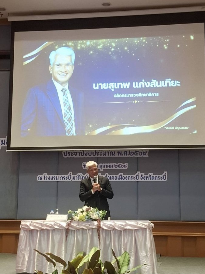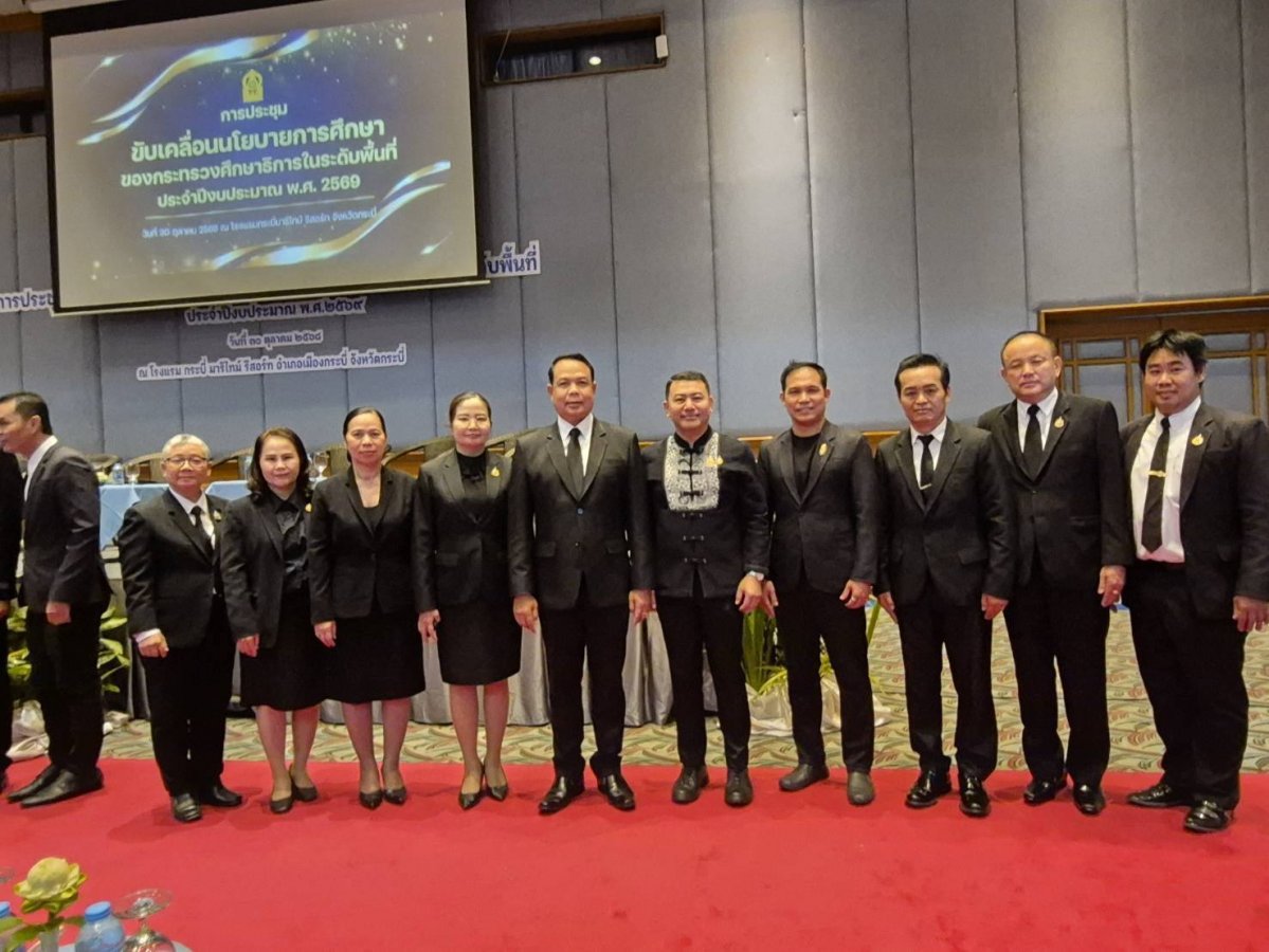 วันที่ 30 ตุลาคม 2568 นางฐิติมา เร่งประเสริฐ ศึกษาธิการจังหวัดเชียงราย พร้อมด้วย นางสาวจันทร์แสง พรมสี รองศึกษาธิการจังหวัดเชียงราย เข้าร่วมประชุมขับเคลื่อนนโยบายการศึกษาของกระทรวงศึกษาธิการในระดับพื้นที่ ประจำปีงบประมาณ พ.ศ.2569 ณ โรงแรมกระบี่มารีไทม์ รีสอร์ท จังหวัดกระบี่ เพื่อสร้างความเข้าใจเกี่ยวกับแนวทางการขับเคลื่อนนโยบายการศึกษาของกระทรวงศึกษาธิการสู่การปฏิบัติ ในระดับพื้นที่ ประจำปีงบประมาณ พ.ศ.2569 ตลอดจนให้ผู้บริหารและบุคลากรของกระทรวงศึกษาธิการทั้งในส่วนกลางและภูมิภาคได้แลกเปลี่ยนเรียนรู้เกี่ยวกับแนวทางการขับเคลื่อนนโยบายการศึกษาของกระทรวงศึกษาธิการในระดับพื้นที่ได้อย่างเป็นรูปธรรม โดยมี นายสุเทพ แก่งสันเทียะ ปลัดกระทรวงศึกษาธิการ เป็นประธานในการประชุมในครั้งนี้