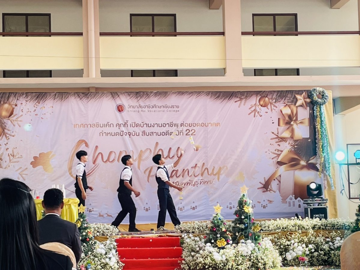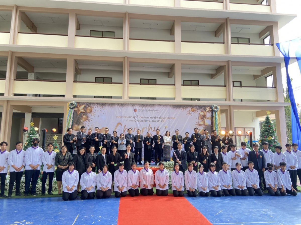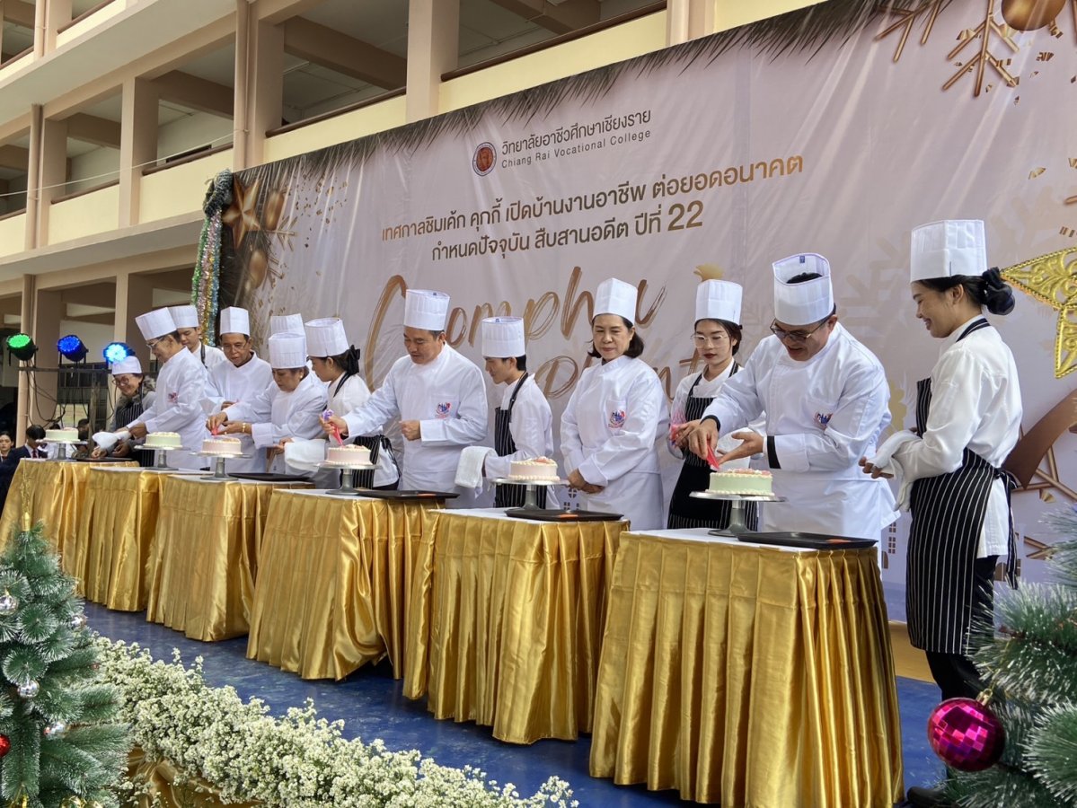 นางฐิติมา เร่งประเสริฐ ศึกษาธิการจังหวัดเชียงราย มอบหมายให้ พ.จ.ต.ฉลอง อ่อนนวน รองศึกษาธิการจังหวัดเชียงราย เข้าร่วมพิธีเปิดงานเทศกาลคุกกี้ เค้ก และของขวัญปีใหม่ ประจำปี 2569 “ ชิมเค้ก เปิดบ้าน งานอาชีพ ต่อยอดอนาคต กำหนดปัจจุบัน สืบสาน อดีต ปีที่ 22 ” ณ วิทยาลัยอาชีวศึกษาเชียงราย อำเภอเมืองเชียงราย จังหวัดเชียงราย เพื่อเป็นการสนองนโยบายของสำนักงานคณะกรรมการการอาชีวศึกษา กระทรวงศึกษาธิการ ในการผลิตและพัฒนากำลังคนอาชีว ศึกษาที่มีสมรรถนะสูง เพื่อการพัฒนาประเทศ ผ่านการแสดงและจำหน่ายผลงานของนักเรียน นักศึกษา ตลอดจนสนับสนุนการพัฒนาทักษะด้านอาชีพความคิดสร้างสรรค์ และการเรียนรู้จากประสบการณ์จริง พร้อมเชื่อมโยงสถานศึกษา ชุมชน และภาคีเครือข่าย สะท้อนความสำคัญของการพัฒนาอาชีวศึกษาคุณภาพอย่างยั่งยืน โดยมี นายสง่า แต่เชื้อสาย รองเลขาธิการคณะกรรมการการอาชีวศึกษา เป็นประธานในพิธีเปิดงาน