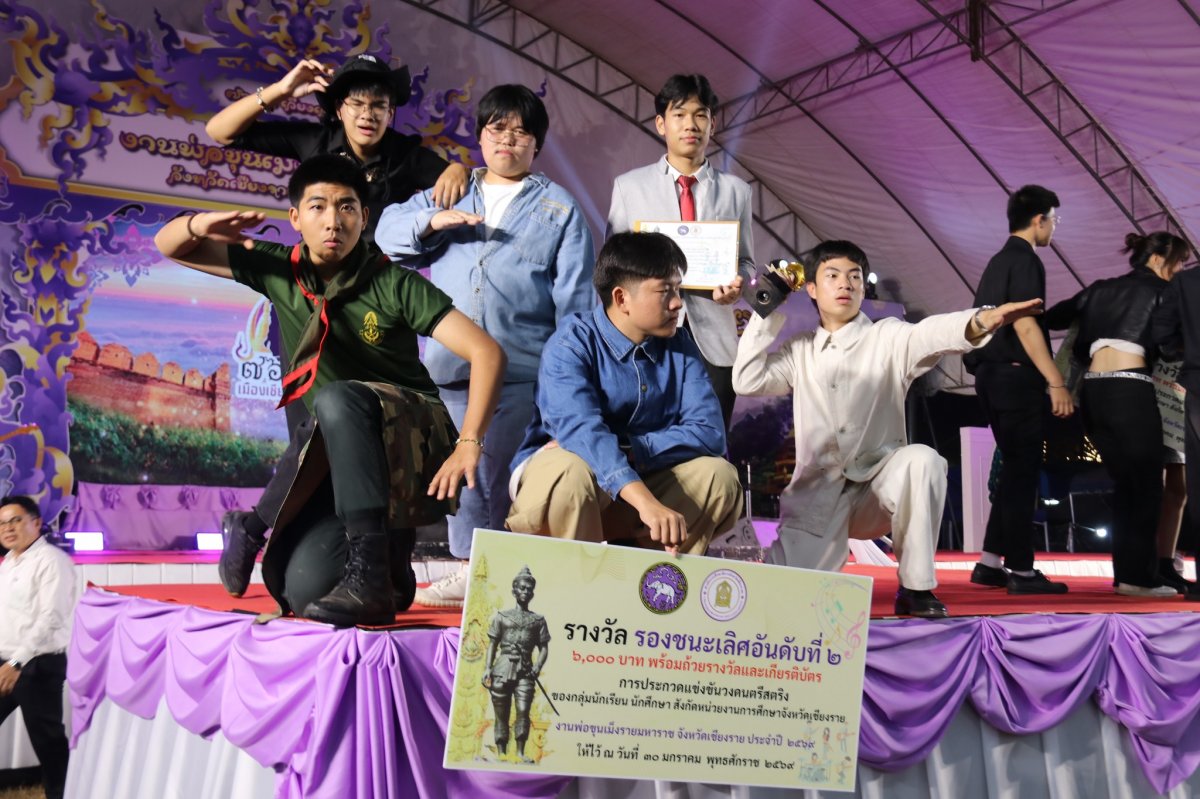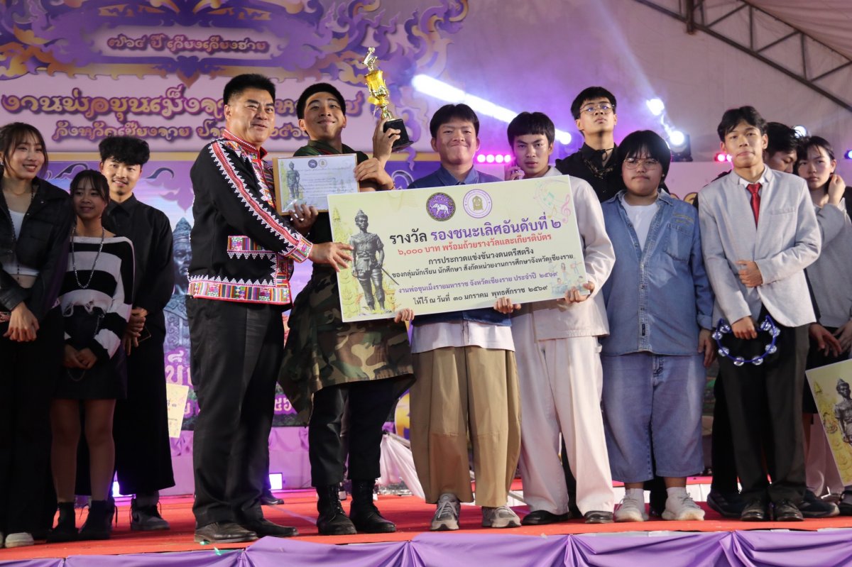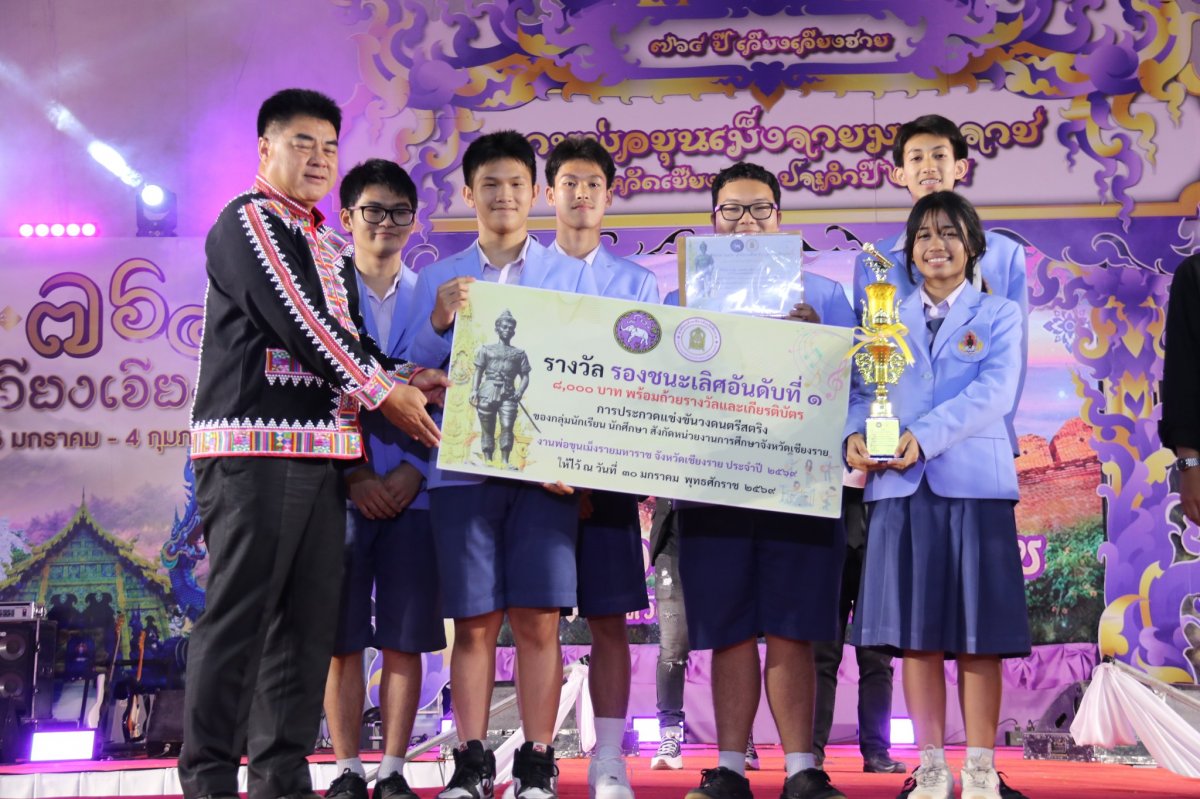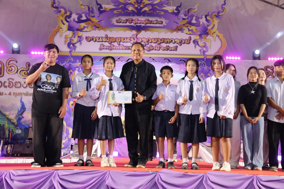 นายชูชีพ พงษ์ไชย ผู้ว่าราชการจังหวัดเชียงราย ให้เกียรติมอบเงินรางวัล พร้อมถ้วยรางวัล และเกียรติบัตร ให้กับนักเรียนที่เข้าร่วมการประกวดวงดนตรีสตริง นักเรียน นักศึกษา สังกัดหน่วยงานทางการศึกษาจังหวัดเชียงราย งานพ่อขุนเม็งรายมหาราช ประจำปี 2569 ณ เวทีกลางงานพ่อขุนเม็งรายมหาราช ลานสนามบินฝูงบิน 416 อ.เมืองเชียงราย จ.เชียงราย โดยมี นายประสงค์ หล้าอ่อน รองผู้ว่าราชการจังหวัดเชียงราย นางฐิติมา เร่งประเสริฐ ศึกษาธิการจังหวัดเชียงราย ผศ.ดร.ธิดาวัลย์ อุ่นกอง ผอ.วิทยาเขตเชียงราย มหาวิทยาลัยพะเยา ผู้บริหารการศึกษา และผู้บริหารสถานศึกษา ร่วมเป็นเกียรติและสักขีพยาน โดยคณะกรรมการผู้ตัดสินมีมติเอกฉันท์ ดังนี้