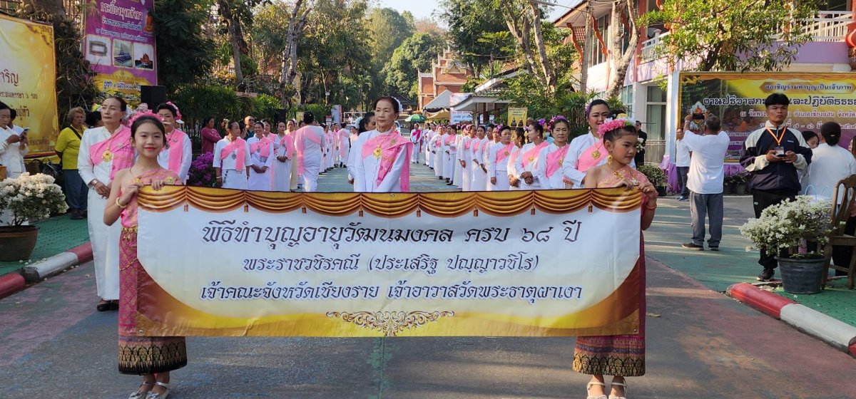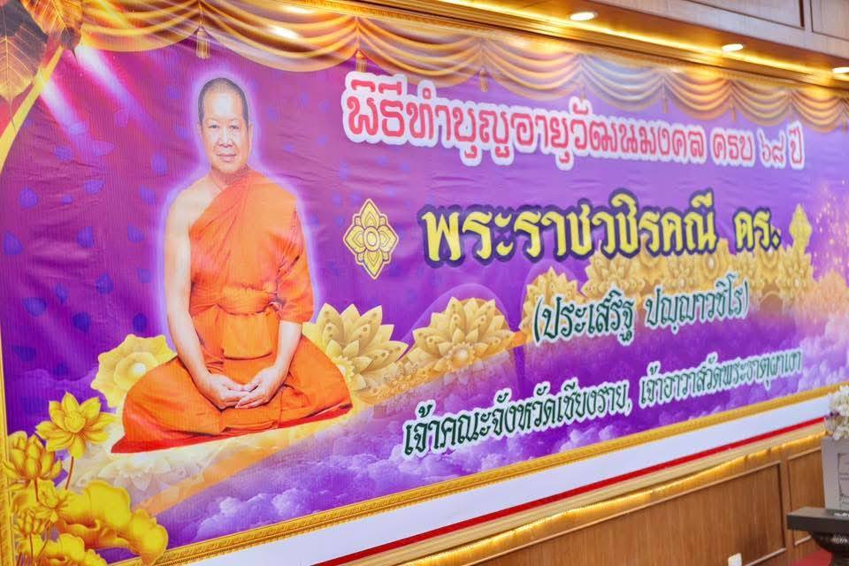 นางฐิติมา เร่งประเสริฐ ศึกษาธิการจังหวัดเชียงราย มอบหมายให้ พ.จ.ต.ฉลอง อ่อนนวล รองศึกษาธิการจังหวัดเชียงราย นำข้าราชการในสังกัดร่วมพิธีทำบุญอายุวัฒนมงคล ครบ 68 ปี พระราชวชิรคณี เจ้าคณะจังหวัดเชียงราย เจ้าอาวาสวัดพระธาตุผาเงา อำเภอเชียงแสน จังหวัดเชียงราย ณ วัดพระธาตุผาเงา อำเภอเชียงแสน จังหวัดเชียงราย โดยมี นายชูชีพ พงษ์ไชย ผู้ว่าราชการจังหวัดเชียงราย พร้อมด้วย นายประสงค์ หล้าอ่อน รองผู้ว่าราชการจังหวัดเชียงราย นำหัวหน้าส่วนราชการ และประชาชนเข้าร่วมพิธีด้วยความปลื้มปีติ