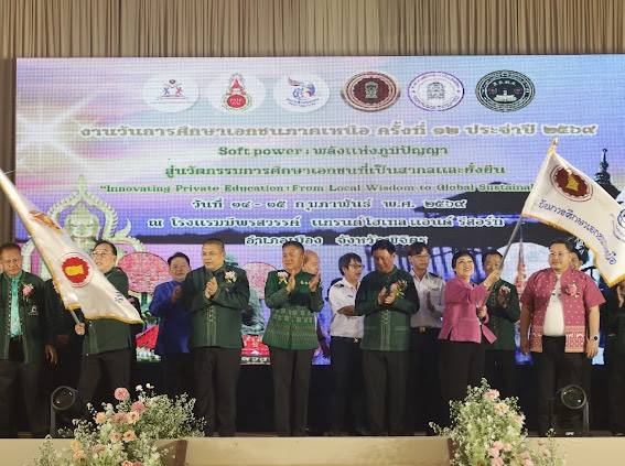 นางฐิติมา เร่งประเสริฐ ศึกษาธิการจังหวัดเชียงราย พร้อมด้วย นางสุพิน เอี้ยวถึ้ง ผู้อำนวยการกลุ่มส่งเสริมการศึกษาเอกชน และนางสาวมัลลิกา เขื่อนแก้ว เจ้าพนักงานธุรการปฏิบัติงาน เข้าร่วมงานวันการศึกษาเอกชนภาคเหนือ 17 จังหวัด ครั้งที่ 12 ประจำปี 2569 ณ โรงแรมมีพรสวรรค์ แกรนด์ โฮเทล แอนด์ รีสอร์ท จังหวัดพิจิตร การจัดงานครั้งนี้มุ่งส่งเสริมความสามัคคี ความคิดสร้างสรรค์ และความเป็นอันหนึ่งอันเดียวกันของโรงเรียนเอกชน พร้อมทั้งเปิดโอกาสให้นักเรียนและครูได้แสดงศักยภาพอย่างสร้างสรรค์ อันเป็นการเผยแพร่ประชาสัมพันธ์ผลงานและภาพลักษณ์ที่ดีของโรงเรียนเอกชนสู่สาธารณชนอย่างภาคภูมิใจ โดยมี นายมณฑล ภาคสุวรรณ์ เลขาธิการคณะกรรมการส่งเสริมการศึกษาเอกชน เป็นประธานในพิธี