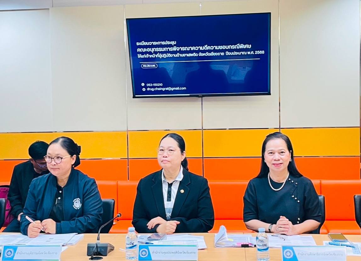 นางฐิติมา เร่งประเสริฐ ศึกษาธิการจังหวัดเชียงราย เข้าร่วมประชุมคณะอนุกรรมการพิจารณาความดีความชอบกรณีพิเศษให้แก่เจ้าหน้าที่ผู้ปฏิบัติงานด้านยาเสพติดจังหวัดเชียงราย ครั้งที่ 1/2568 ณ ห้องประชุมพวงแสด ชั้น 3 ศาลากลางจังหวัดเชียงราย การประชุมดังกล่าวจัดขึ้นเพื่อพิจารณาคัดเลือกและให้ความดีความชอบแก่ เจ้าหน้าที่ผู้ปฏิบัติงานด้านยาเสพติดที่มีผลงานดีเด่น มีความเสียสละ และอุทิศตนในการปฏิบัติหน้าที่อย่างต่อเนื่องอันเป็นการสร้างขวัญและกำลังใจแก่ผู้ปฏิบัติงาน ตลอดจนส่งเสริมให้การดำเนินงานด้านการป้องกันและแก้ไขปัญหายาเสพติดในพื้นที่จังหวัดเชียงรายเป็นไปอย่างมีประสิทธิภาพ โดยมี นายชูชีพ พงษ์ไชย ผู้ว่าราชการจังหวัดเชียงราย เป็นประธานการประชุม