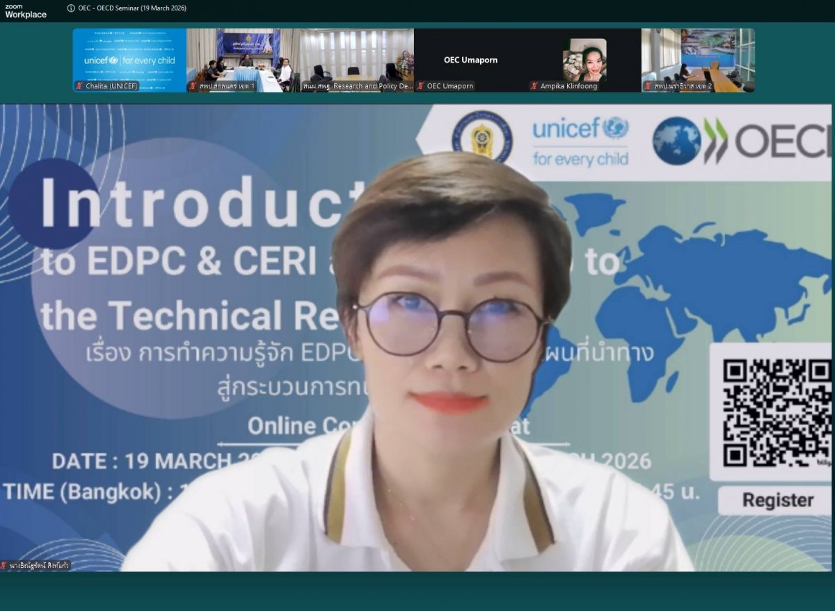 นางฐิติมา เร่งประเสริฐ ศึกษาธิการจังหวัดเชียงราย มอบหมายให้ นางสาวจันทร์แสง พรมสี รองศึกษาธิการจังหวัดเชียงราย พร้อมด้วยนายวีรัตน์ สานุมิตร ผู้อำนวยการกลุ่มนิเทศ ติดตามและประเมินผล และคณะศึกษานิเทศก์สำนักงานศึกษาธิการจังหวัดเชียงราย เข้าร่วมการประชุมความก้าวหน้าในการสมัครเป็นสมาชิก OECD และการประชุมทางวิชาการ เรื่อง Introduction to EdPC & CER and Roadmap to Technical Review ระหว่างวันที่ 19 - 20 มีนาคม 2569 เวลา 15.00 -19.30 น. ณ ห้องประชุมสิปปนนท์ เกตุทัต อาคาร 2 ชั้น 2 สำนักงานเลขาธิการสภาการศึกษา ผ่านสื่ออิเล็กทรอนิกส์ เพื่อสร้างความรู้ความเข้าใจเกี่ยวกับภาพรวมของคณะกรรมการนโยบายการศึกษาของ OECD และกระบวนการเชิงกลยุทธ์สำหรับการทบทวนทางเทคนิค การศึกษาปี 2040 และระดับเวทีโลก บทบาทเชิงกลยุทธ์ของ OECD บทบาทเชิงกลยุทธ์ที่สนับสนุนการพัฒนาการศึกษา และแนวโน้มการศึกษาดิจิทัล ปี 2026 ให้แก่บุคลากรทางการศึกษาของสำนักงานศึกษาธิการจังหวัด เพื่อเป็นแนวทางในการพัฒนาการจัดการศึกษาอย่างยั่งยืน